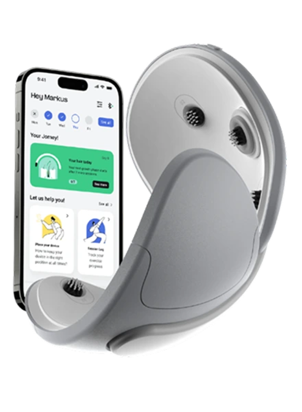Unser Wearable verwendet schwache elektrische Stimulation über unser einzigartiges tragbares Gerät, um die Haarstammzellen wieder in Vorläuferzellen umzuwandeln, die die Haarfollikel und das Haarwachstum mit Energie versorgen.